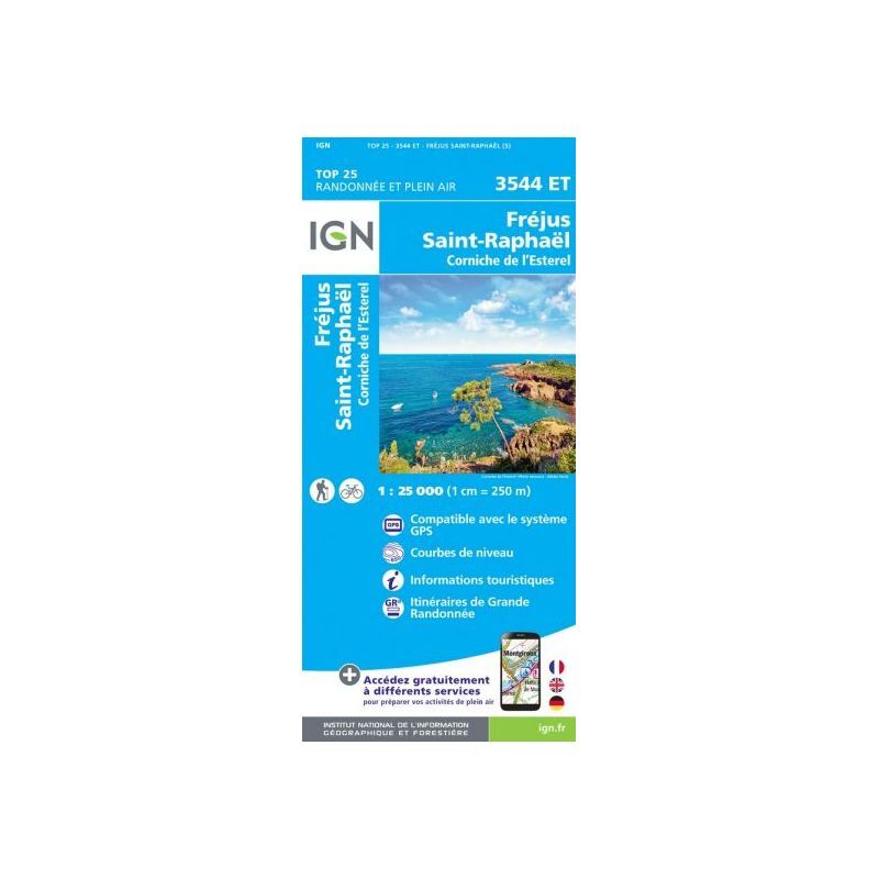 Que ce soit pour quelques kilomètres ou une longue exploration, la carte topographique IGN Fréjus / Saint-Raphaël sera une alliée précieuse pour préparer et vivre votre aventure. D'une grande précision, cette carte IGN (échelle 1 : 25 000) contient tous les détails nécessaires pour se déplacer sur les sentiers et routes de Fréjus / Saint-Raphaël et découvrir ses nombreuses richesses : reliefs, cours d'eau, refuges et autres sites remarquables... Au-delà de votre sens de l'orientation, cette carte de randonnée IGN est donc, selon nous, indispensable dans votre sac et dans vos mains !